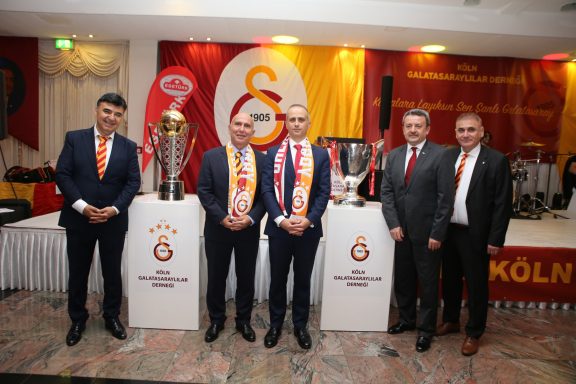Kupalarımızı Köln’e getirdik; Avrupa’daki sarı-kırmızı yüreklerle birlikte zaferimizi coşkuyla taçlandırdık. Gecemize; Yönetim Kurulu Üyemiz Mahmut Recevik, GSYİAD Başkanı İbrahim Hatipoğlu, Köln Başkonsolosu Barış Ceyhun Erciyes ve Avrupa’daki Galatasaray derneklerinin başkanları katılarak bizleri onurlandırdı.